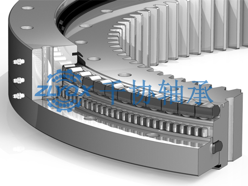 三排滚柱式回转支承具有三个座圈上下及径向滚道各自分开,使得每一排滚柱的负载都能确切地加以确定,能够同时承受各种载荷,是四种产品中承载能力更大的一种,轴、径向尺寸都较大结构牢固,特别适用于要求较大直径的重型机械,如斗轮式挖掘机、轮式起重机、船用起重机、钢包回转及大吨位汽车起重机等机械上。...