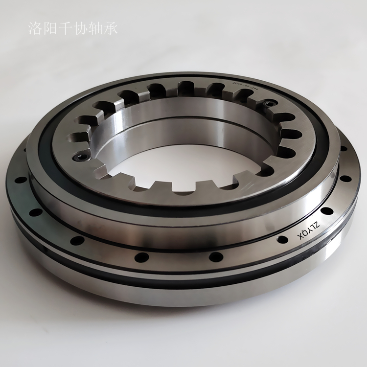 ZKLDF系列推力角接触球轴承包括一个整体外圈、两个内圈和两组钢球及保持架组件,接触角为60度。外圈和内圈带有安装孔,方便通过连接螺栓对轴承进行安装固定。轴承自身通过联接螺栓固定,保证安装运输和搬运。ZKLDF推力角接触球系列转台轴承的两侧有密封盖,可防止外部污物、杂质的进入和内部润滑脂的泄漏。...